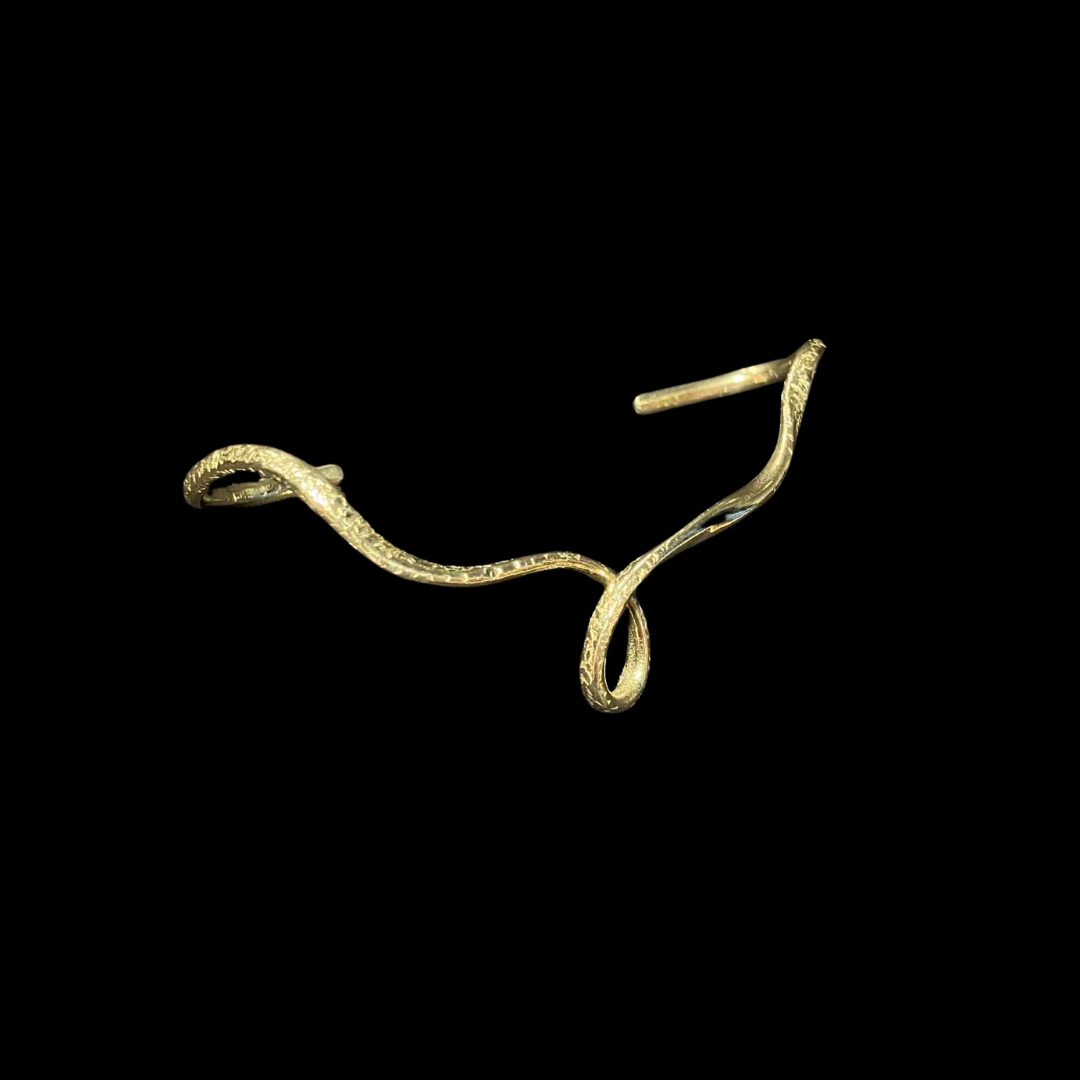 The Ouroboros Palm Ring is a sculptural piece that embodies the eternal cycle of life. Its flowing curves form a striking loop across the palm, echoing the ancient symbol of infinity, renewal, and continuous return.