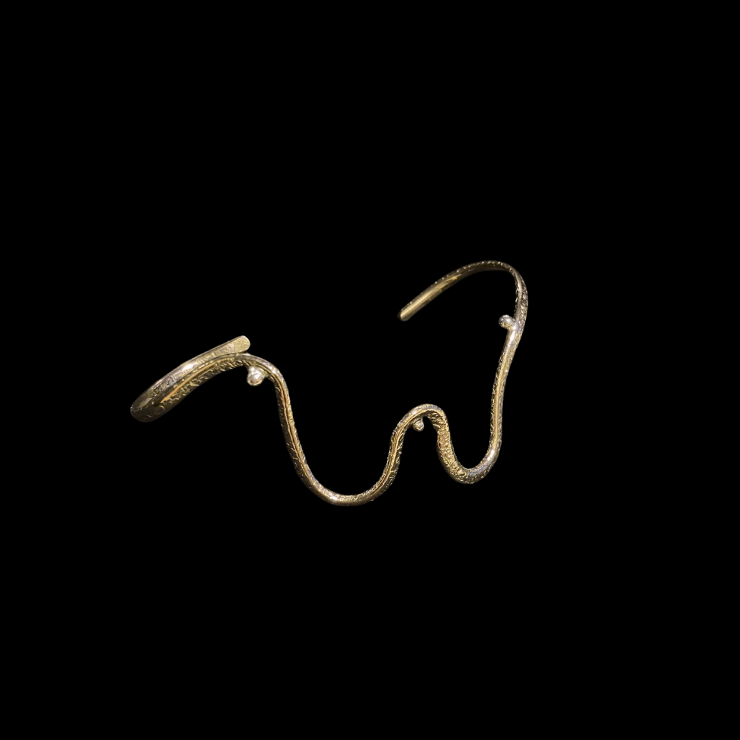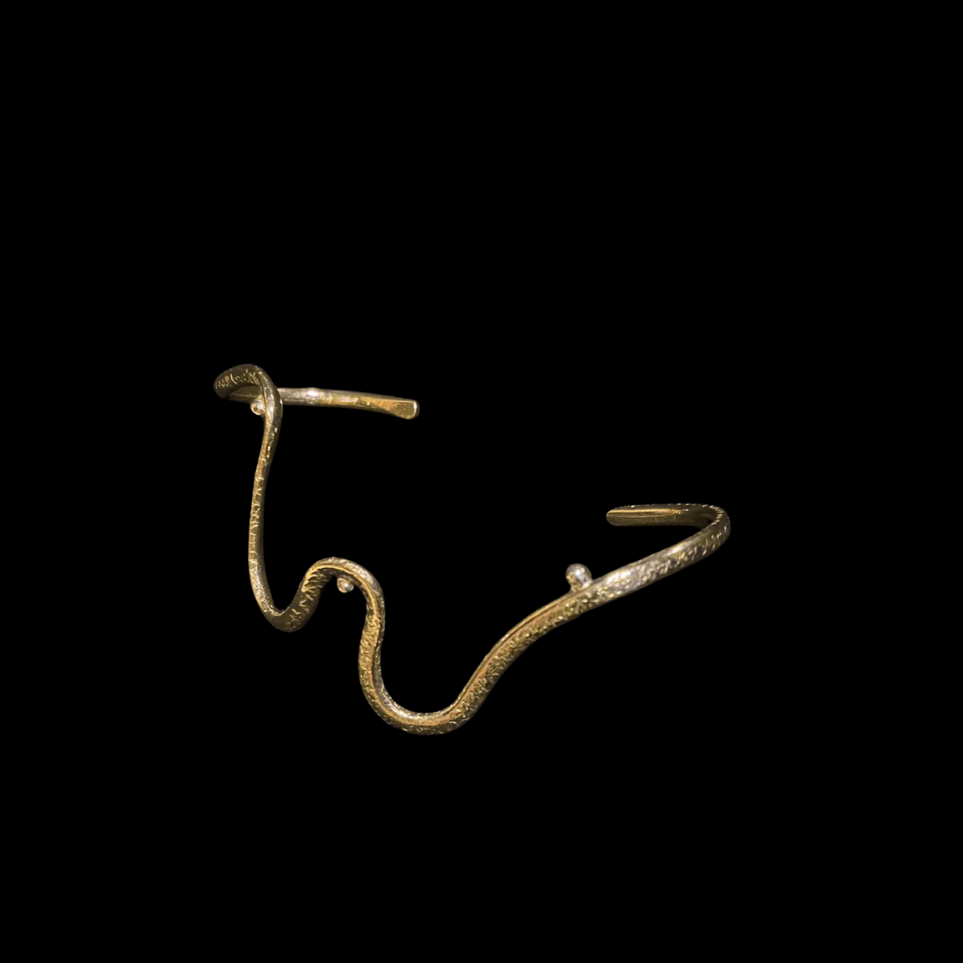 A sculptural brass palm ring that flows like a serpent across the hand. A bold and artistic piece that transforms the palm into a living canvas.