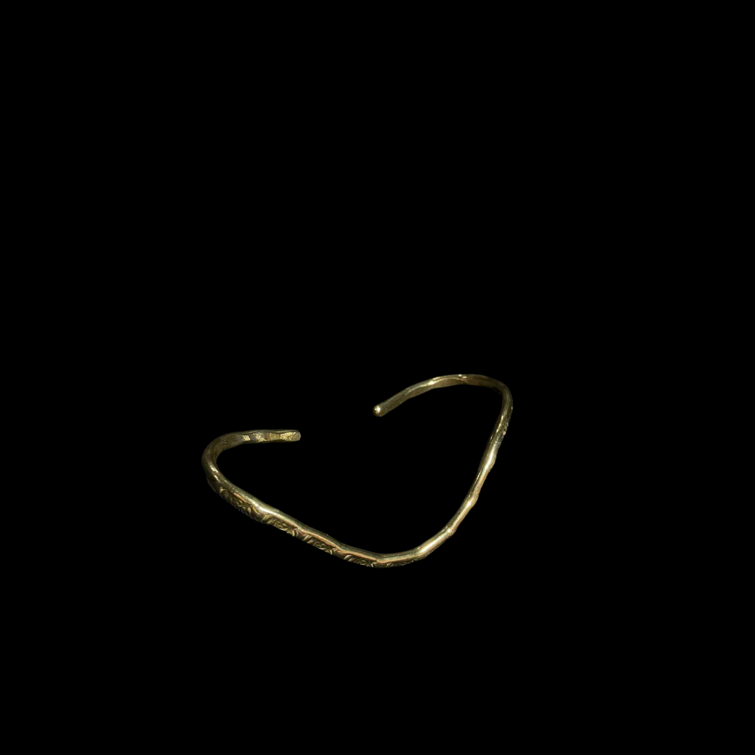 A handcrafted brass palm ring stamped with a wild rose motif. Bold yet graceful, it blooms naturally across the palm with untamed beauty.